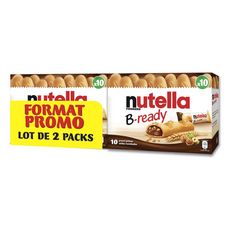 Nutella B-ready, c’est un cœur onctueux de Nutella au goût unique, enrobé d’une enveloppe croustillante. Un duo de sensations dans un emballage individuel, à emporter avec vous. Nutella B-ready, le Nutella qui croustille. Spécialité croustillante fourrée à la pâte à tartiner aux noisettes et au cacao NUTELLA et aux éclats croustillants