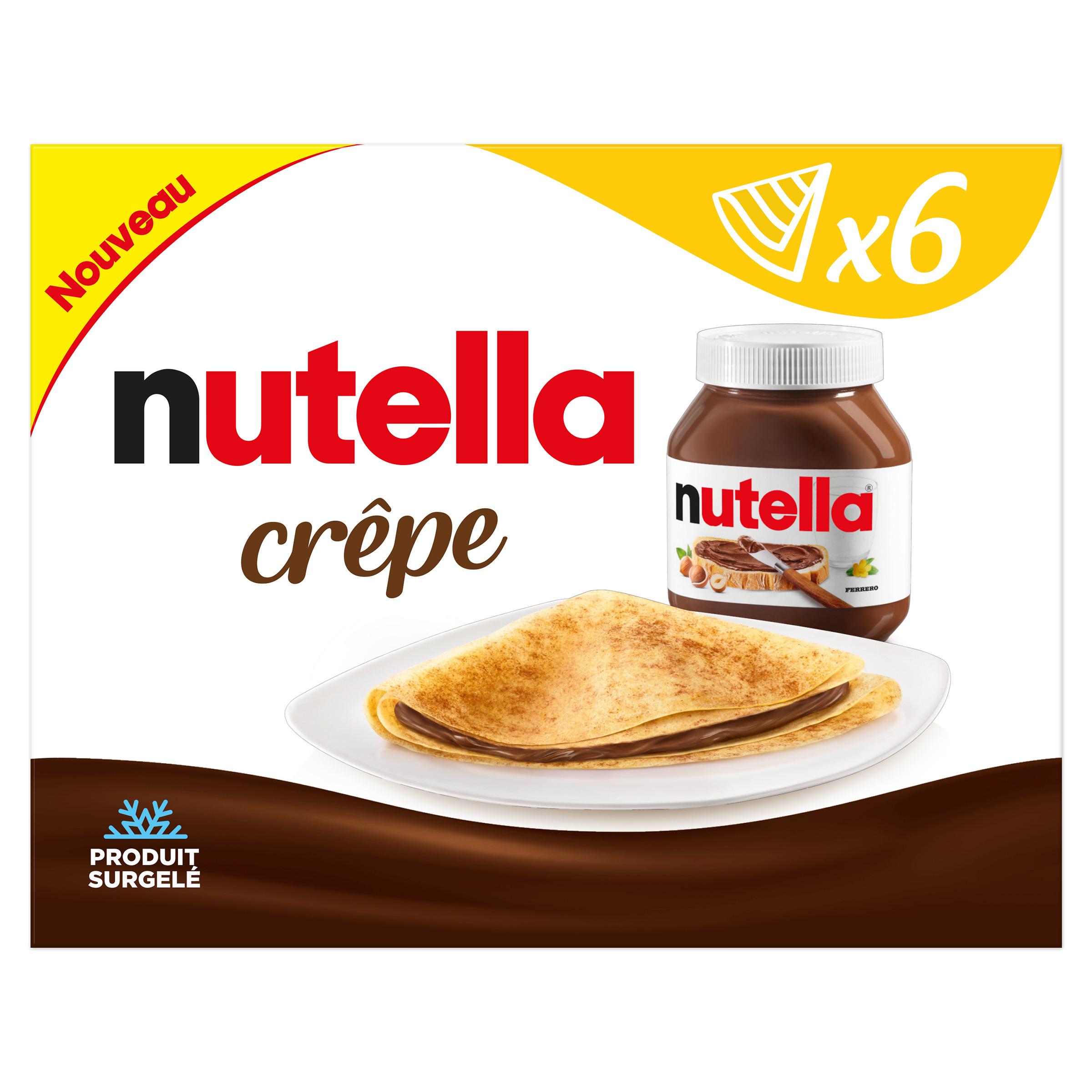 Crêpes cuites fourrées à la pâte à tartiner aux noisettes et au cacao Nutella®, surgelées.