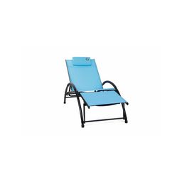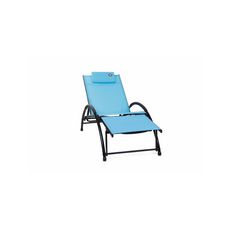 Le bain de soleil avec repose tête O’,Colors est idéal pour une relaxation optimale. Structure légère en aluminium, toile en textylène. Dossier et repose pieds réglable en 3 positions. Couleur : Bleu.