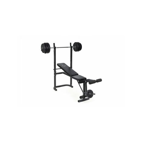 - Contenu colis : Banc de musculation + Barre de musculation + 20 Kg de poids