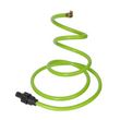 Se branche directement sur le tuyau d'arrosage. Tuyau flexible à mémoire de forme.