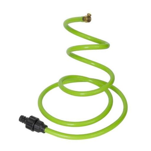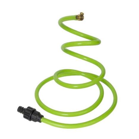 Se branche directement sur le tuyau d'arrosage. Tuyau flexible à mémoire de forme.Livré avec 2m de tuyau en aluminium et PVC à mémoire de forme, un raccord rapide pour tuyau d'arrosage, 2 buses de brumisation laiton.