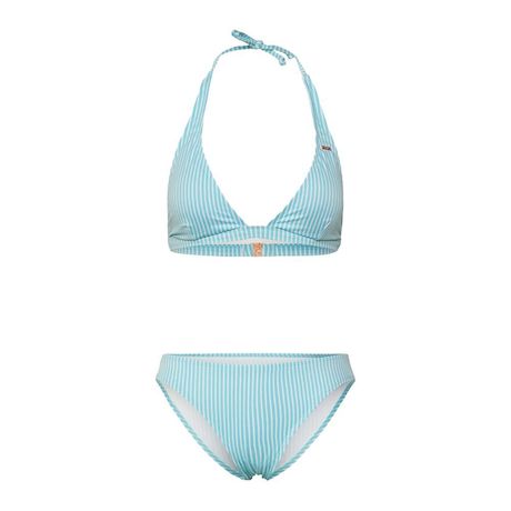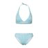 Optez pour l'ensemble bikini Marga !Coloris : Bleu Bretelles autour du couCoussinets amovibles sur les bonnetsBas mi haut Composition : 79 % polyester recyclé (REPREVE), 21 % élasthanne