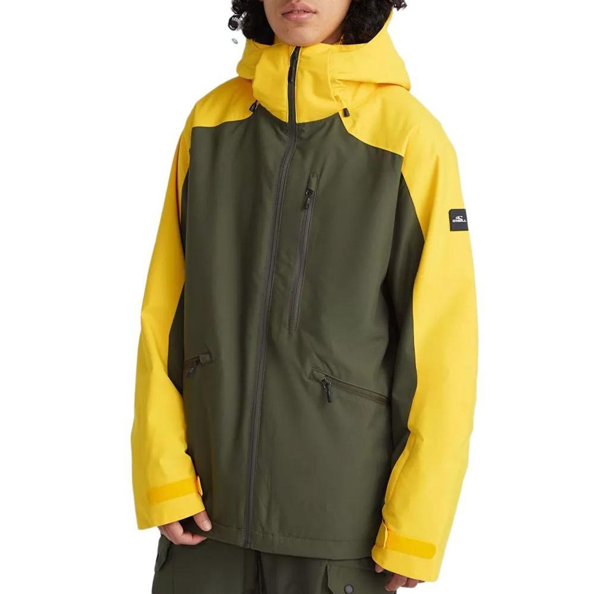 Optez pour ce blouson O'NeillColoris : Jaune/Kaki Manches longuesAvec capucheCol montantComposition : 100% polyesterProtège-mentonOurlet avec cordon de serrageFermeture éclairPoches avec fermeture éclair, poches poitrineCapuche amovible, capuche avec cordon de serrageFermeture à découvertDéperlant