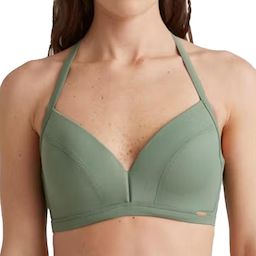 Craquez pour le haut de maillot de bain de la marque O'NEILL !Coloris : VertTasses fermesArmature latérale pour un soutien supplémentaireUne bande élastique en caoutchouc sous la poitrineTraitement DWRFermeture altiqueBretelles réglablesComposition : 78 % polyamide (ECONYL), 22 % élasthanne
