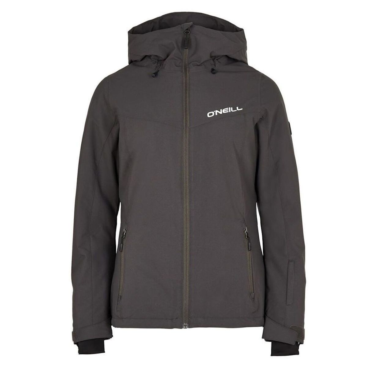 Craquez pour le manteaux de la marque O'neill !Coloris : Gris FoncéVeste hardshellManchettes avec ouverture pour le pouceProtection de fermeture éclairCouture soudée / thermosoudéePare-ventPoche pour forfait de skiSystème de raccord veste-pantalonCapuche réglableDoublure chaude600-700 CuinFermeture
