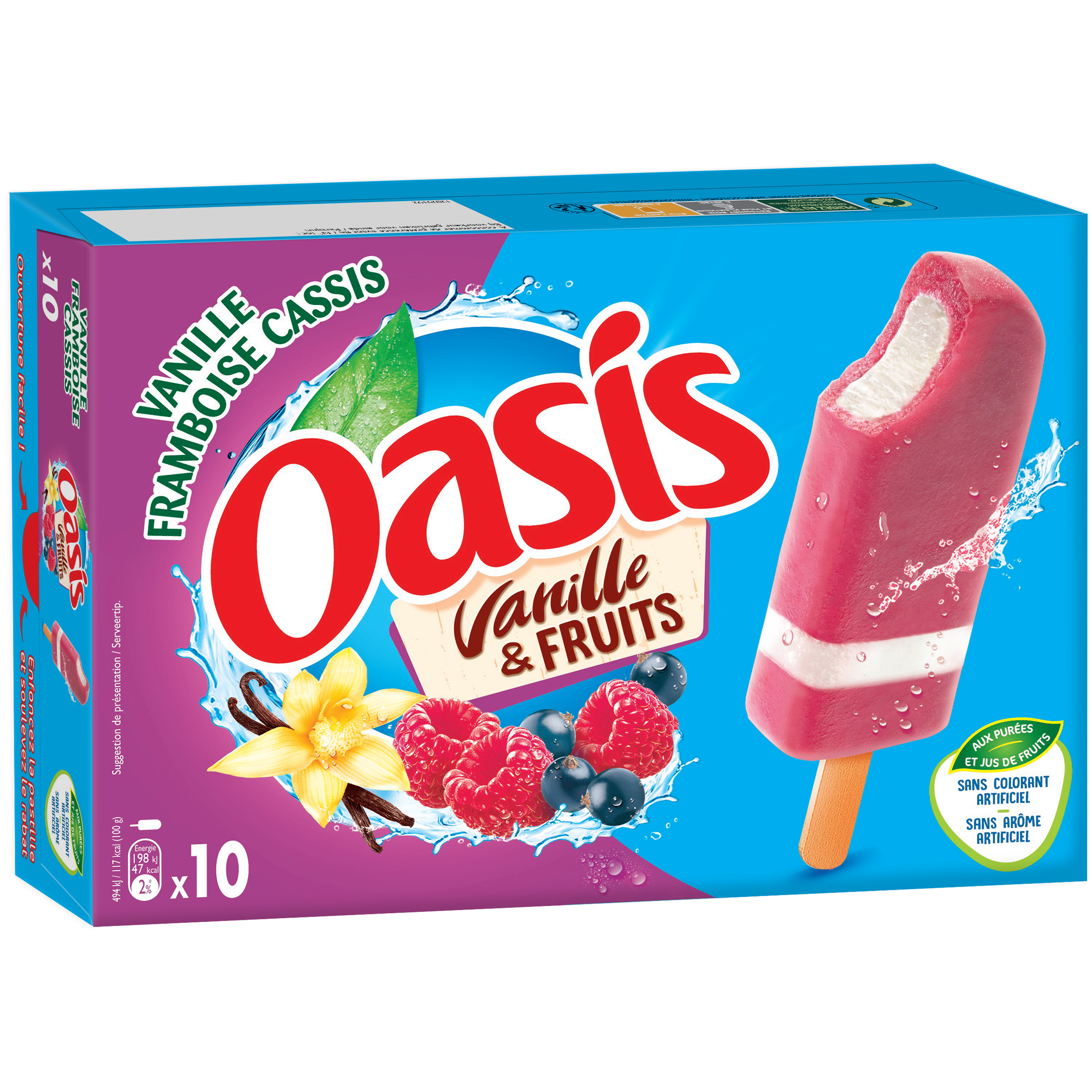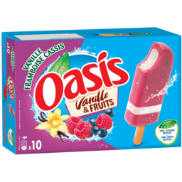 Bâtonnet de glace à la vanille avec un enrobage de sorbet framboise - cassis, aromatisé. Un bâtonnet qui allie l’intensité d’un sorbet Framboise Cassis rafraîchissant à la douceur d’un cœur de glace onctueuse à la vanille.