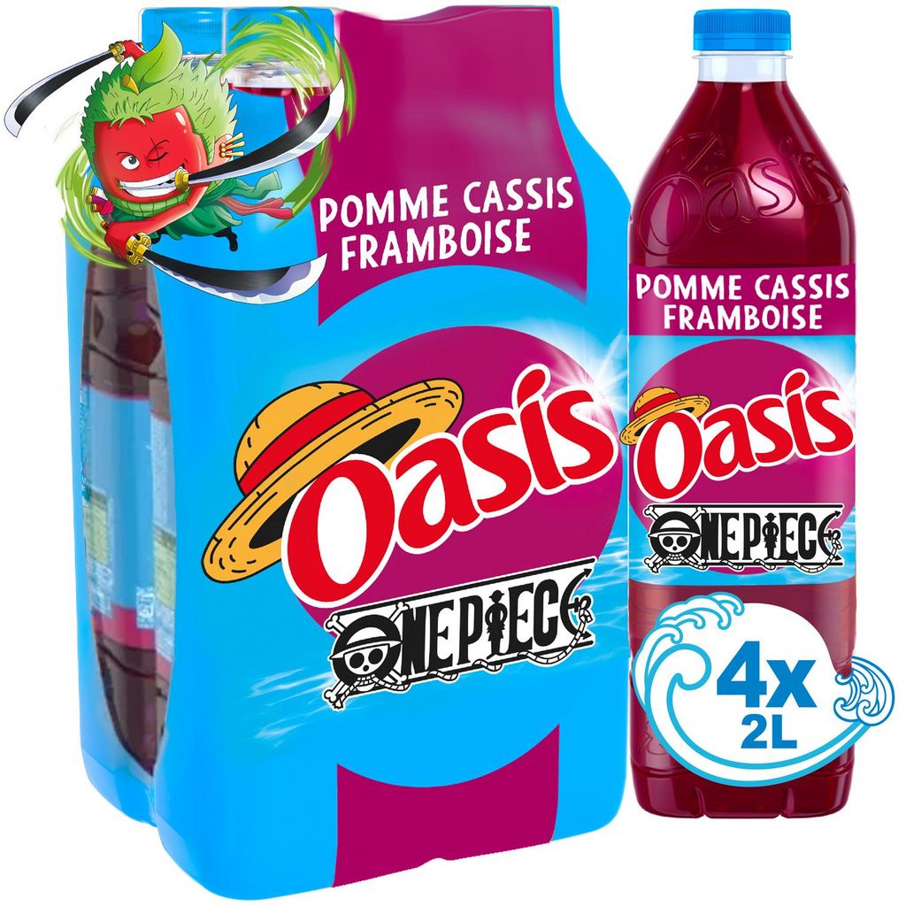 Oasis Pomme Cassis Framboise, la boisson ultra rafraîchissante alliant l'acidité de la framboise et la cassis avec la douceur de la pomme. Une recette unique sans arôme artificiel et sans colorant artificiel, pour un moment de plaisir et de fun en famille ou entre amis !