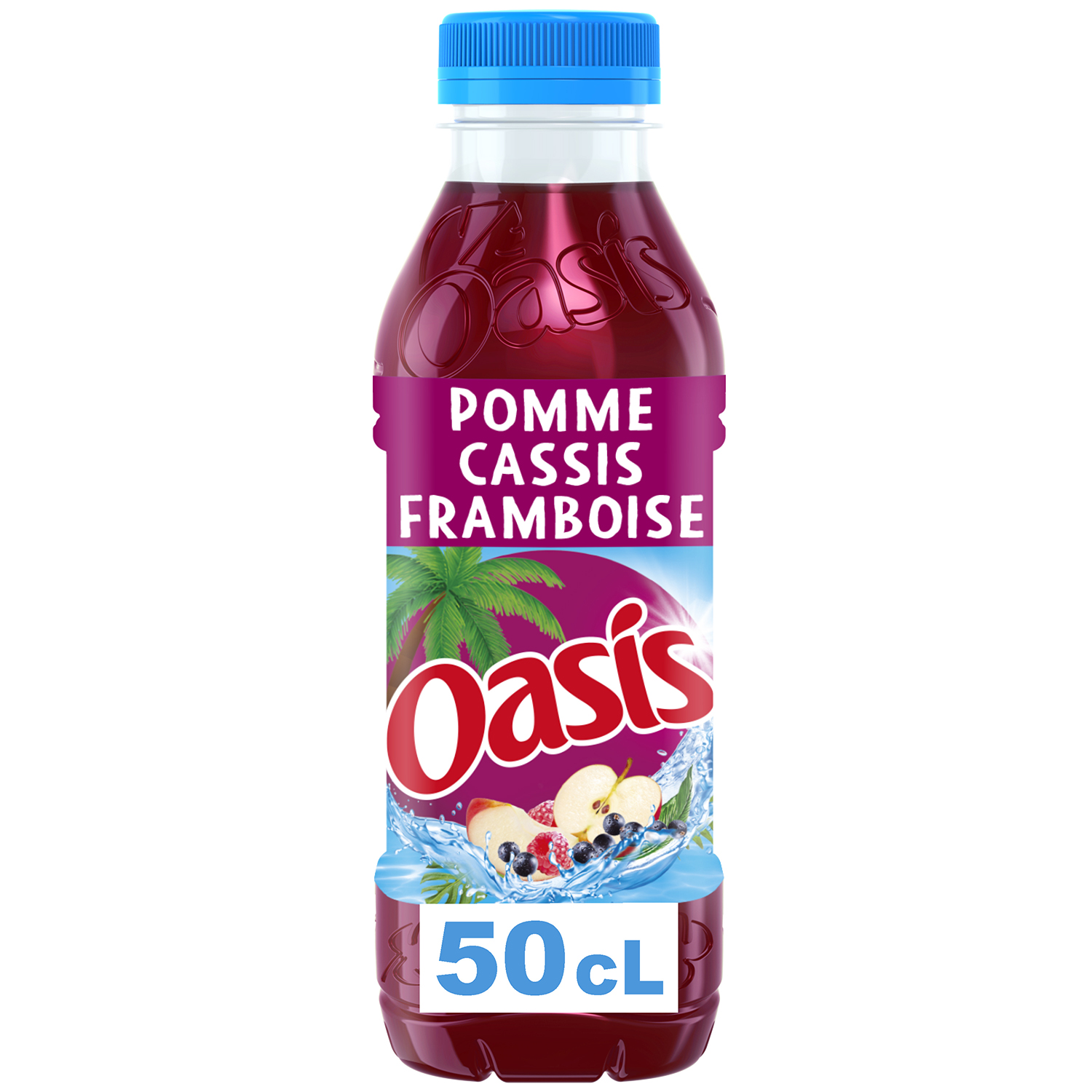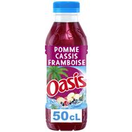 Oasis Pomme Cassis Framboise, la boisson ultra rafraîchissante alliant l'acidité de la framboise et la cassis avec la douceur de la pomme. Une recette unique sans arôme artificiel et sans colorant artificiel, pour un moment de plaisir et de fun en famille ou entre amis !