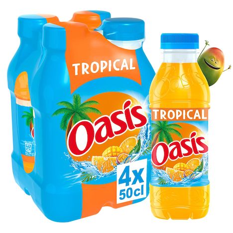 Oasis Tropical, la boisson ultra rafraîchissante au bon goût de fruits tropicaux. Une recette unique sans arôme artificiel et sans colorant artificiel, pour un moment de plaisir et de fun en famille ou entre amis !