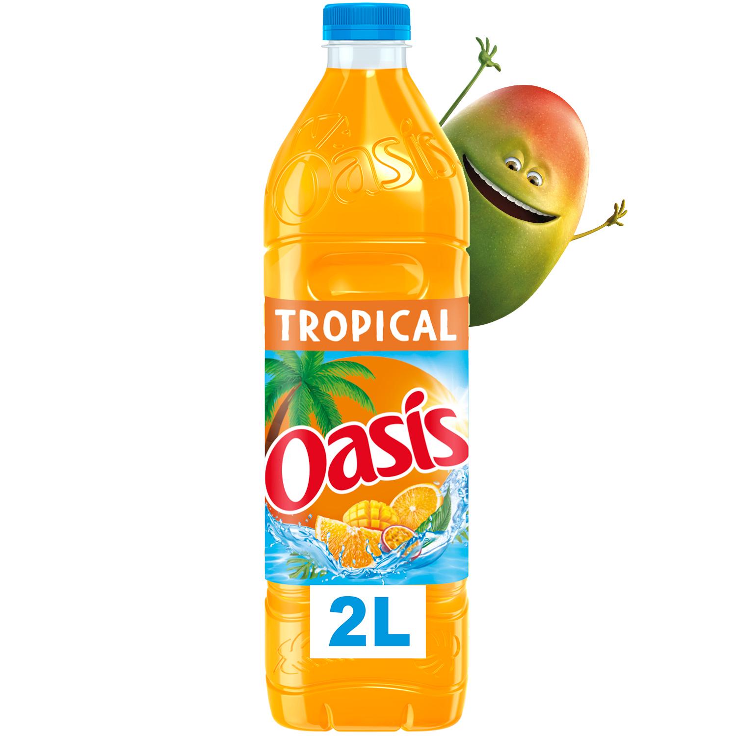 Oasis Tropical, la boisson ultra rafraîchissante au bon goût de fruits tropicaux. Une recette unique sans arôme artificiel et sans colorant artificiel, pour un moment de plaisir et de fun en famille ou entre amis !