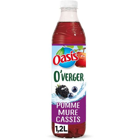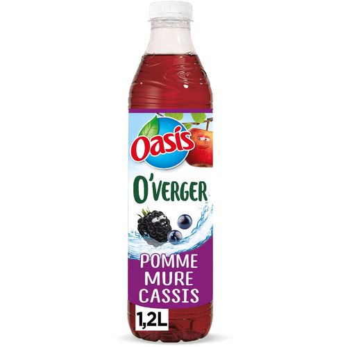 Oasis O’Verger Pomme Mure Cassis, la douceur de la pomme sublimée par les notes sauvages et florales de mûre et cassis avec juste le sucre des fruits* *contient des sucres naturellement présents Boisson rafraichissante à l’eau de source et aux fruits, aromatisée.
