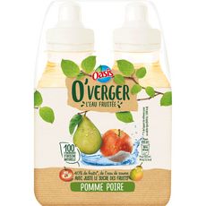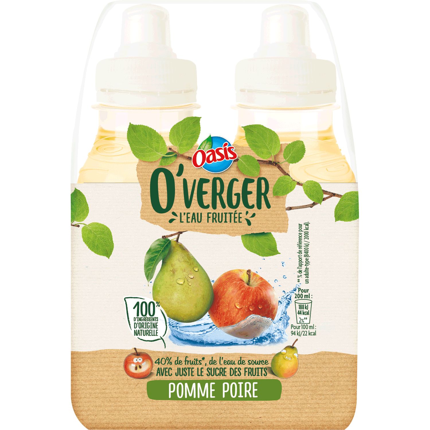 Boisson rafraichissante à l’eau de source et aux fruits, aromatisée. Oasis O’Verger Pomme Poire, la rencontre de la pomme acidulée et de la douceur de la poire avec juste le sucre des fruits* *contient des sucres naturellement présents