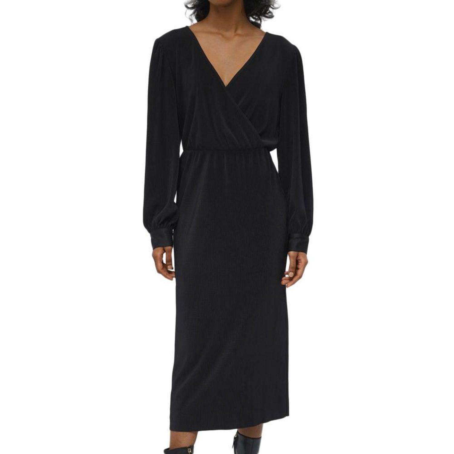 Optez pour la robe de la marque OBJECT !Coloris : NoirCol V Manches longues Tissu plisséRobe longueComposition : 100% polyester