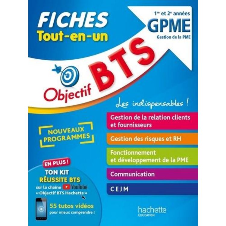 Les fiches indispensables pour réviser et réussir le BTS GPME ! - 183 fiches de révision claires et visuelles - Tous les rappels de cours, pour retenir l'essentiel - Des schémas, pour mémoriser en un clin d'oeil - Des définitions claires à connaître - Des exemples concrets pour bien comprendre - Le descriptif des épreuves et des conseils pour réussir