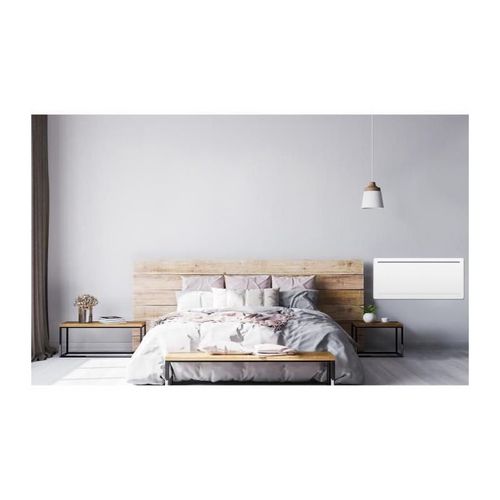 OCEANIC Radiateur électrique fixe a inertie seche - Puissance calorifique 2000 W - Design galbé - Coeur de chauffe : Pierre céramique - Façade en acier - Fil pilote 6 ordres - Thermostat électronique - Affichage digital - Programmation journaliere et hebdomadaire - Verrouillage parental - Blanc