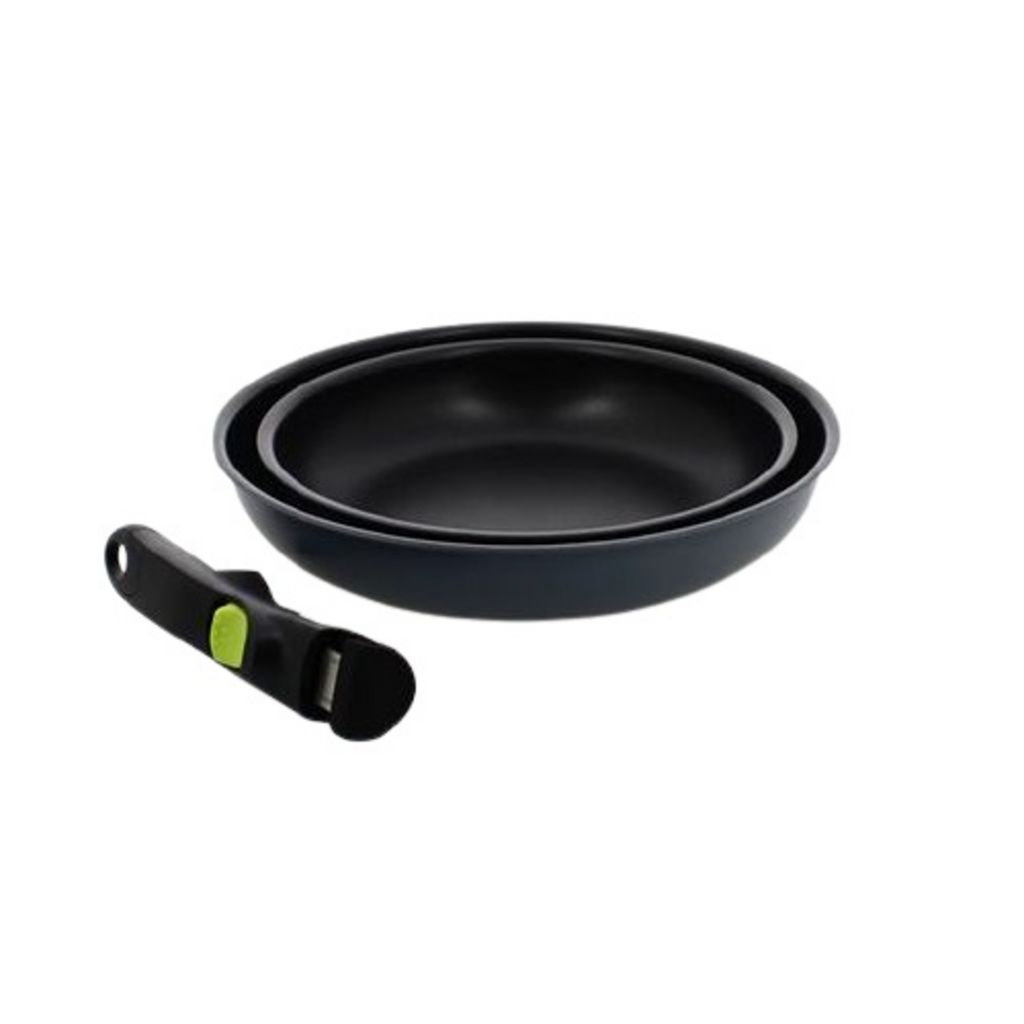 Ce set de 2 poêles de qualité trouvera naturellement sa place au sein de votre cuisine. Pratique et simple d'utilisation grâce à sa poignée démontable qui s'adapte sur les 2 poêles en un seul clic.