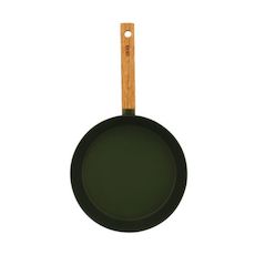 Poêle 24 cm Kaki. Ector. La gamme Ector s'inspire de la nature forte et contrastée des forêts nordiques. Son nom révèle la robustesse et la solidité des produits et reflète également l'aspect brut de cette gamme. Cette collection propose un contraste entre le chêne massif et les différents coloris. Authentique, de qualité, au design moderne et sobre. Formes droites élégantes et uniques. En aluminium forgé de 3.5 mm pour une cuisson parfaitement homogène et une grande résistante. Poignée en chêne massif finition brute. Revêtement intérieur antiadhésif en céramique. Revêtement certifié Greblon 3 couches. Fond triple épaisseur. Lavage à la main. Tous feux dont induction.