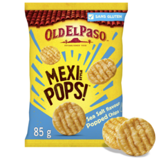 Découvrez les incontournables Mexi Pops Sel de Mer Old El Paso™ 85g, des chips soufflées délicieusement croustillantes, au goût légèrement salé. Ensoleillez vos apéritifs et dégustez en famille ou entre amis vos Mexi Pops Sel de Mer avec la délicieuse Sauce Salsa Dip douce Old El Paso™ ou le Guacamole Old El Paso™ et n'oubliez pas, Vendredi c'est Fajitas Party !