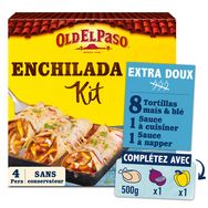 Kit composé de tortillas au maïs et au blé, d'une sauce tomate à cuisiner et d'une sauce crémeuse à napper Kit composé de galettes au maïs, du sauce à la tomate et d'une sauce à la crème.