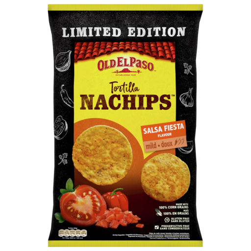 Ingrédients : grains de maïs, huile de tournesol riche en acide oléïque, assaisonnement (sucre, sel de cuisine, maltodextrine, oignon en poudre, épices (paprika en poudre, graines de coriandre, piment, cumin, livèche), arôme, poudre de tomate, extrait de levure, mélange de poudres pimenté (piment, cumin, origan, ail, sel), ail en poudre, persil, colorant (extrait de paprika), acidifiants (acide malique, acide citrique)). Conditionnées sous atmosphère protectrice. Allergènes : voir les éléments en majuscules. Peut contenir du SOJA, du CELERI, de la MOUTARDE et du LAIT.