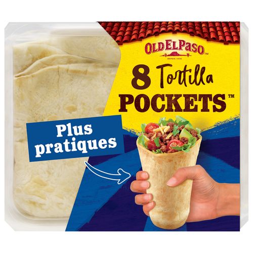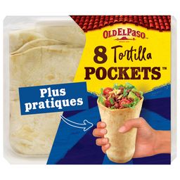 Les 8 Tortillas Pocket™ Old El Paso™ (galettes) sont moelleuses et sans conservateur. Découvrez-les au sein de la gamme Tortillas et Wraps Old El Paso™ et créez de délicieux burritos et fajitas. Poulet, bœuf, légumes croquants, guacamole ou Sauce Salsa Original Old El Paso™ : garnissez ces tortillas Pocket™de vos ingrédients préférés ! Pour plus d'idées recettes, rendez-vous sur notre site internet oldelpaso.fr. Accompagnez vos repas inspirés de la cuisine mexicaine avec des Tortilla Nachips Old El Paso™ et laissez-vous tenter par le Guacamole Old El Paso™, idéal pour l'apéritif ! Et n'oubliez pas, Vendredi c'est Fajitas Party !