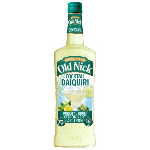 Célèbre recette née sous le soleil de Cuba, le Daïquiri est un cocktail tout en puissance et fraîcheur. Le Daïquiri OLD NICK allie subtilement citron et citron vert pour un cocktail acidulé aux saveurs exotiques. Pour réaliser ses cocktails, Old Nick sélectionne les meilleurs rhums et les associe à des jus et arômes naturels, reproduisant ainsi les typicités gustatives des recettes originales.