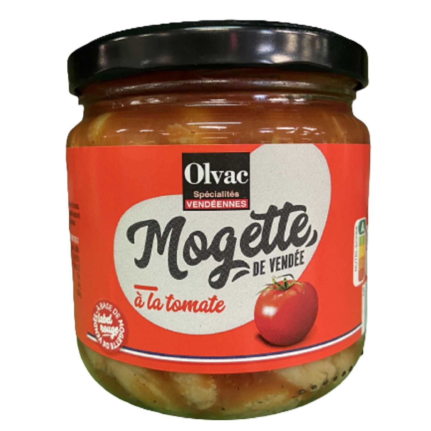 Ingrédients : Eau, Mogette de Vendée Label Rouge IGP blanchie (42.6%), tomate (5.2%), concentré de tomates (2,9%), sel, ail, poivre noir, thym, laurier.