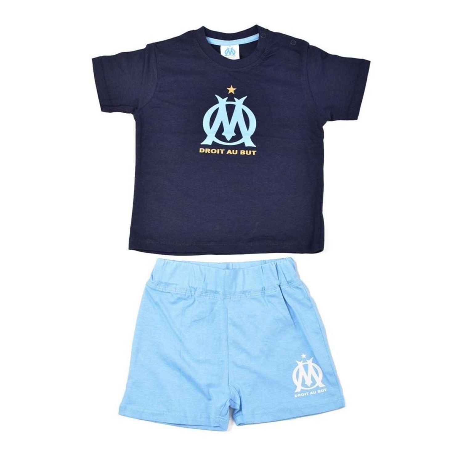 En savoir +Ensemble pour bébé de l'Olympique de Marseille ! Contient t-shirt + short Col rond, manches courtes Short avec ceinture élastique Ecusson de l'OM imprimé Composition : 100% coton