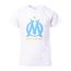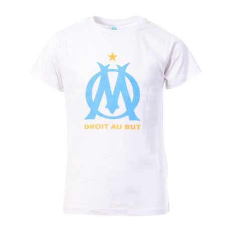 Optez vite ce tee-shirt de l'Olympique de Marseille ! Coloris : blanc, bleu Col rond Manches courtes Flocage OM sur le devant Composition : 100% coton