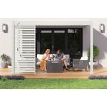 Ses 25 lames doubles orientables jusqu&rsquo,à 135° offrent de nombreuses possibilités d&rsquo,ajustement de la lumière, de l&rsquo,ombre et de la ventilation par le biais d&rsquo,une manivelle contrôlée manuellement. Une fois le toit entièrement fermé, elle est étanche permettant de rester au sec par temps de pluie sous la pergola. L&rsquo,eau sera évacuée à travers les gouttières situées au niveau des poutres puis redirigées par les poteaux. Conçue en aluminium et résistante à des vents jusqu&rsquo,à 100km/h c&rsquo,est une pergola d&rsquo,une grande qualité. La pergola Ombréa® est à monter soi-même, le montage se déroulera simplement, à 2 ou 3 personnes en un temps moyen d&rsquo,½, journée