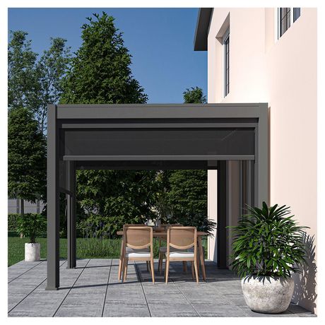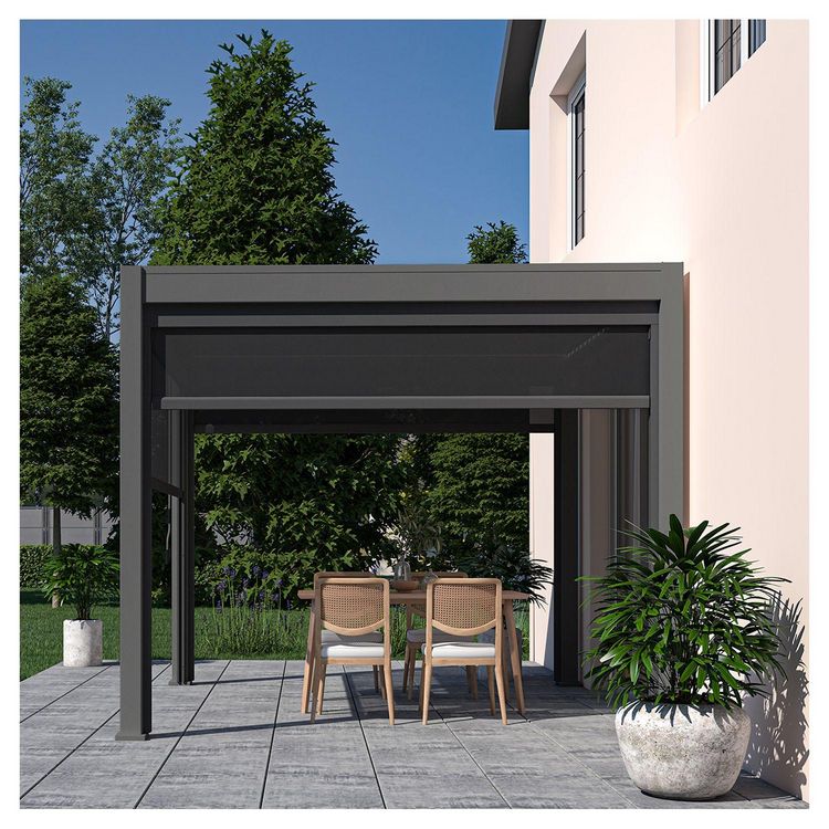 COMINTES - Pergola Bioclimatique autoportée 3x3m anthracite + 1 store anthracite OMBREA
