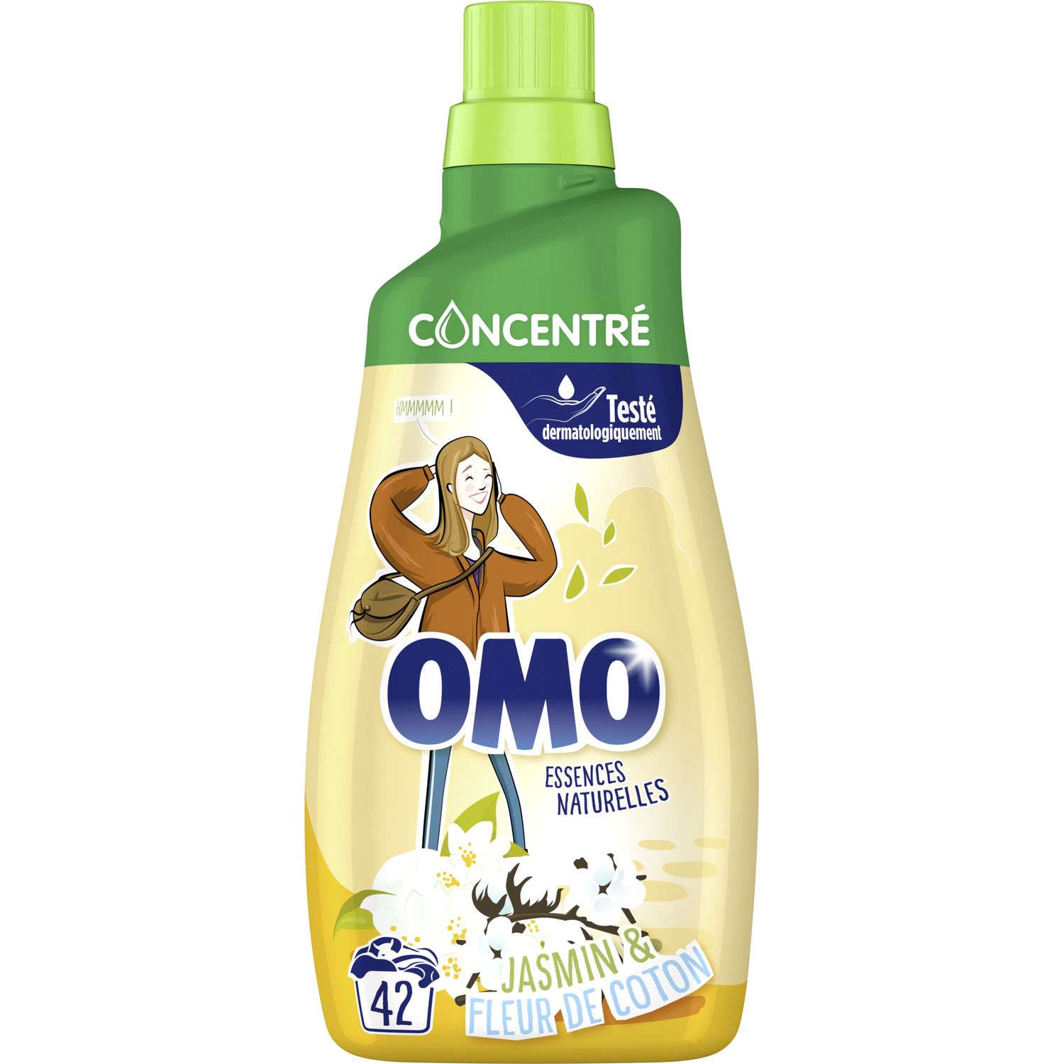 Chez OMO on n'est pas du matin ... on préfère attaquer la journée en douceur ! Alors on adore cette lessive aux essences naturelles qui sent divinement bon le jasmin et la fleur de coton, d'autant plus qu'elle est testée dermatologiquement pour respecter toutes les peaux sensibles. En plus, nous l'avons concentrée pour qu'un seul bouchon suffise pour une propreté éclatante ! Et puis, comme on aime bien vous faire plaisir, on vous propose toute une gamme de parfums* pour vous permettre de varier les plaisirs en fonction de votre personnalité et de votre humeur du jour ! Rose & Lilas Blanc, Jasmin & Fleur de Coton, Noix de Coco, Mandarine & Fleurs de Pommier, Pêche & Pamplemousse, Bouquet de Provence ou encore Lavande & Patchouli... OMO, des parfums qui font « HMMM ! ». *Parfum de synthèse. Venez donc découvrir les lessives liquides concentrées OMO. Notre lessive liquide concentrée parfum Jasmin & Fleur de Coton est testée dermatologiquement. Alors combien en met-on ? Pour 4-5 kg de linge on vous recommande 35 ml. Si votre eau est très dure ou votre linge très sale, il vaut mieux en mettre 52 ml (soit un bouchon et demi).