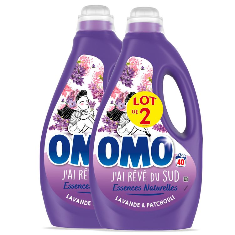 Découvrez les lessives liquides Omo aux essences naturelles et testées dermatologiquement. La lessive liquide OMO se dissout instantanément et pénètre au cœur du linge. 50 ml de lessive liquide OMO Lavande et Patchouli sont recommandés pour 4-5 kg de linge, rajoutez 15 ml si le linge est très sale ou l'eau très dure. À quelle température ? Dès 30° pour un lavage impeccable tout en consommant moins d'énergie. Le parfum est également disponible en lessives liquides, concentrées et capsules.