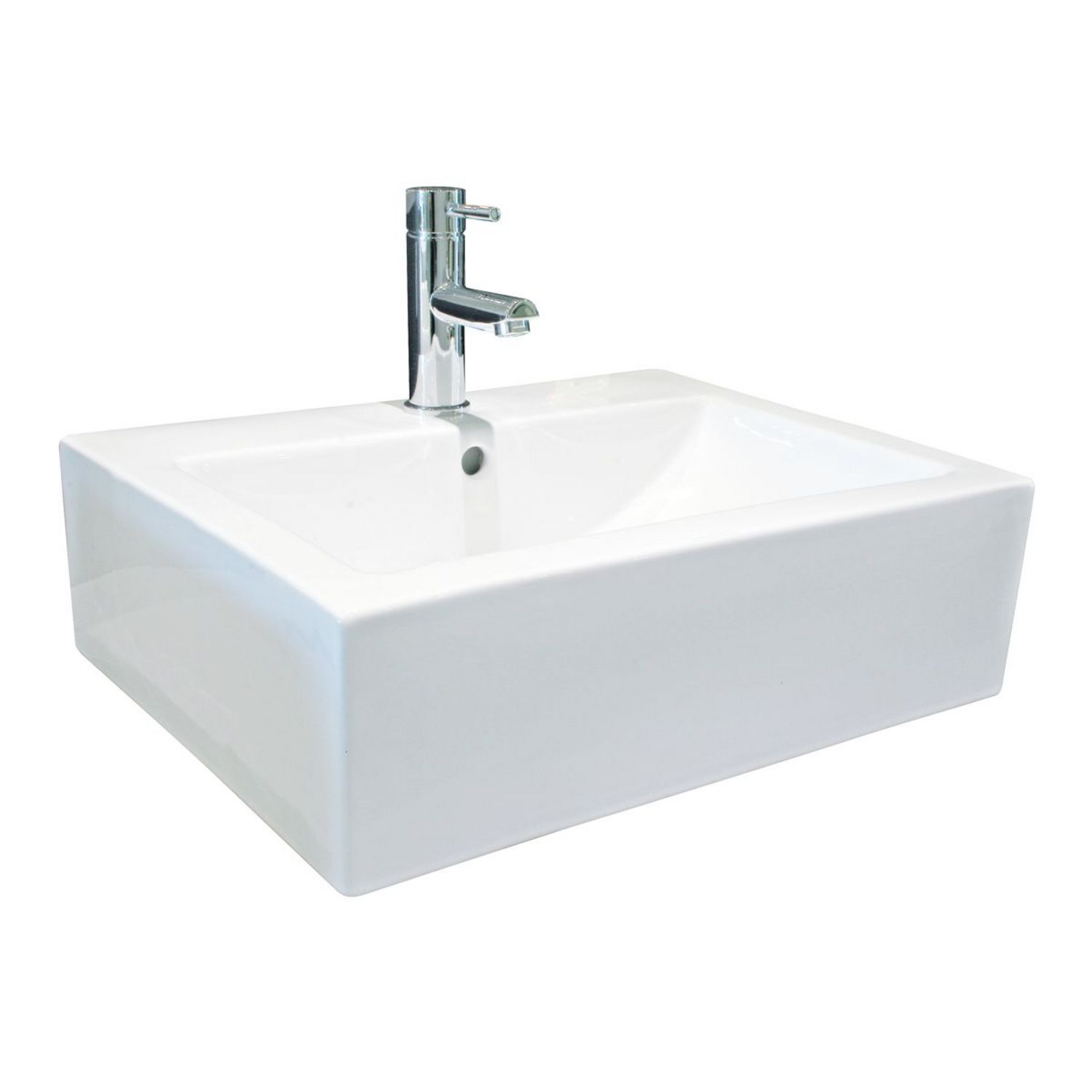 Vasque à poser CUBIC, Le timbre en céramique. Vasque avec trop plein - Trou de robinetterie intégrée - Face arrière non émaillée - Livrée sans vidage ni robinetterie - Céramique - Largeur 52cm - Finition Blanc