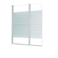 Cette paroi de 120x140cm se compose d'un volet de 80cm et d'un second volet de 40cm articulé. Elle est ornée d'une sérigraphie givrée positionnée en brise vue, ce décor se compose d'une série de bandes fines. Son profilé en aluminium blanc est ajustable (+25mm).