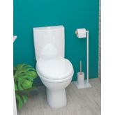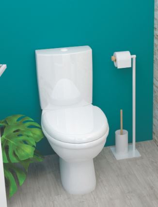 Il se compose d'une cuvette en céramique blanche et sans bride*, à sortie horizontale. L'abattant slim est en polypropylène blanc avec charnières déclipsables à frein de chute pour une fermeture ralentie.