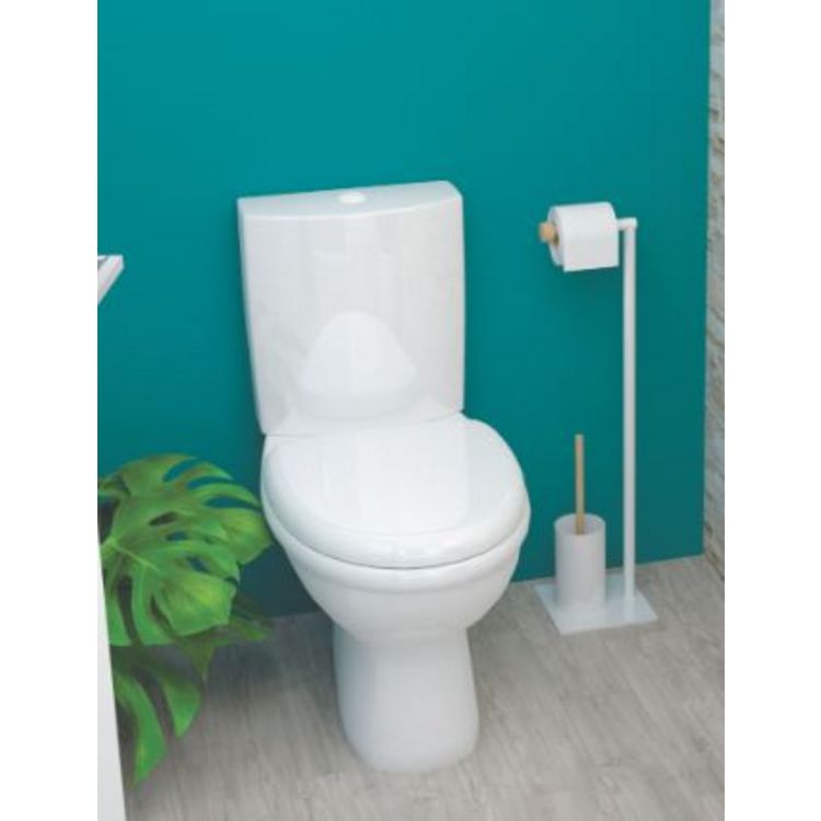 Pack WC SIMIA sans bride SH. H78,5xl35x66,5cm - Cuvette hauteur 40,5cm - Céramique blanche - Abattant double avec frein de chute - Mécanisme de chasse 3/5L silencieux - Livré avec fixations sol
