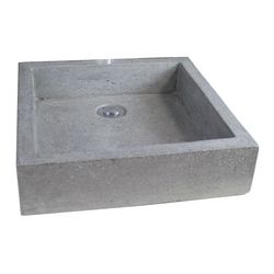 Vasque à poser TIMBRE 40, Le timbre carré en Terrazzo. Vasque sans trop plein - Livrée sans bonde ni robinetterie - Prévoir l'achat d'une bonde à écoulement libre - Largeur 40cm - Finition Gris