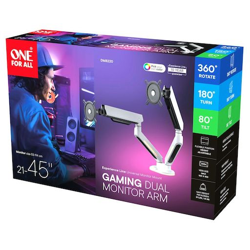 Support écran PC 2 écrans 21/45'' blanc RGB inclinable
