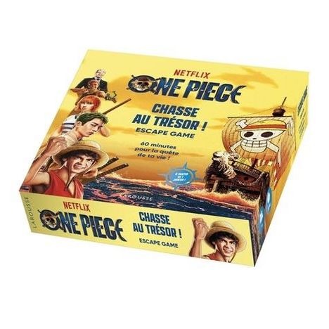 Plongez dans l'univers du live action phénomène de Netflix ! Plus de 20 ans après la mort de Gold Roger, Monkey D. Luffy n'a qu'un seul rêve : trouver le One Piece et devenir le Roi des Pirates ! Pour y parvenir, il devra recruter un équipage loyal, dénicher un navire et sillonner les mers les plus dangereuses. Mais attention, la Marine est à ses trousses et tentera tout pour l'arrêter dans sa quête... Un Escape Game palpitant, riche en références à l'univers One Piece, où l'on explore East Blue au fil des étapes pour une immersion totale dans une fantastique aventure. Jouez aussi avec votre smartphone ! Lancez le chrono, testez vos réponses, demandez des aides et les solutions grâce à une page Internet dédiée !