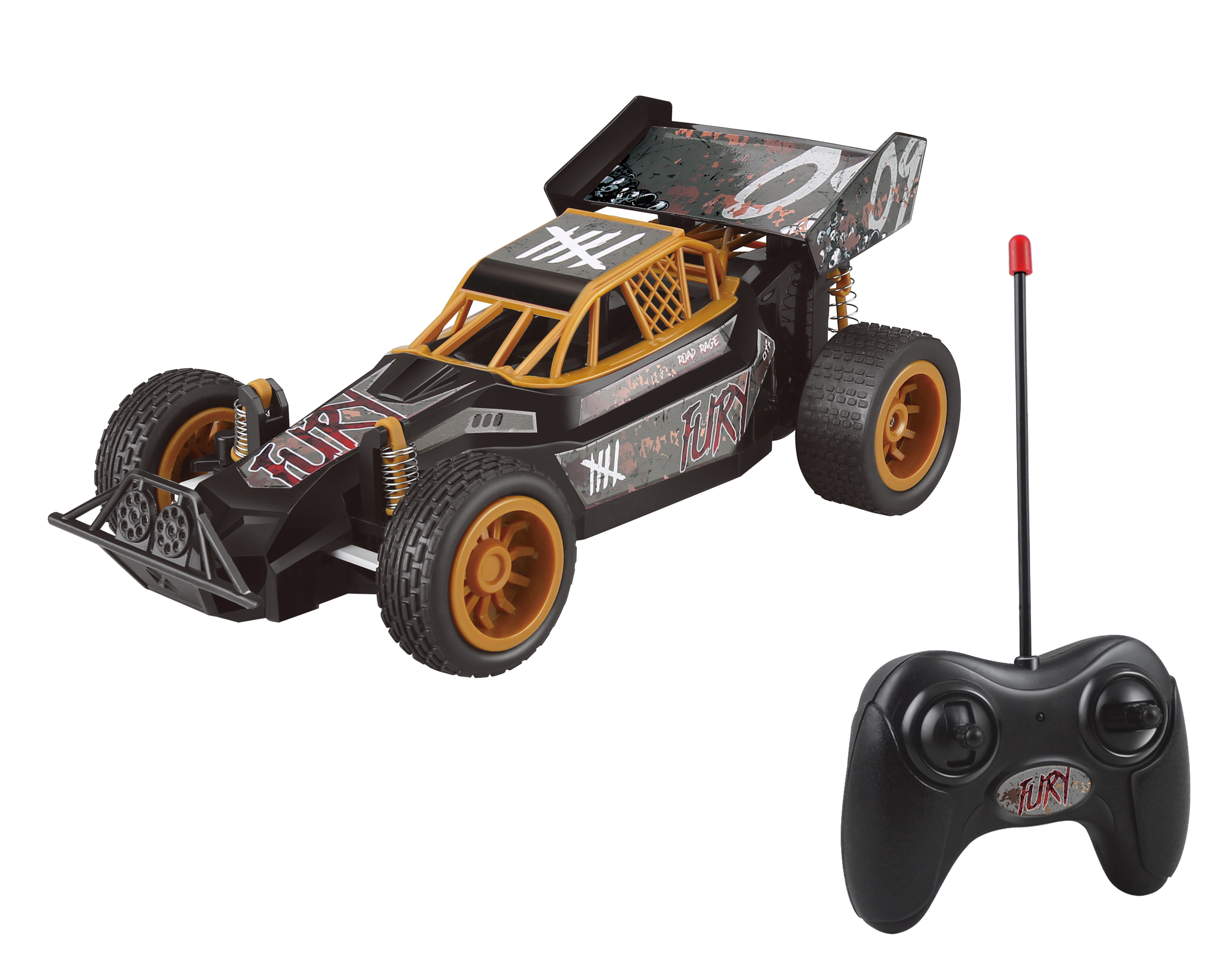 Fonce et franchis les plus gros obstacles avec ton bolide radiocommandé tout-terrain ! Son profil aérodynamique et ses petites roues te permettront d'aller super vite sur tout type de terrain. Tu pourras aussi faire de belles cascades avec ton Buggy Fury de 26 cm.