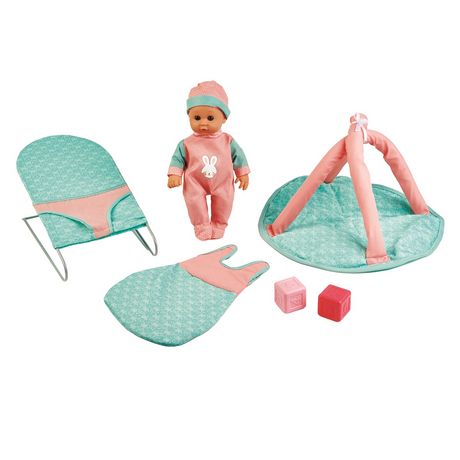 Jouez avec votre bébé sur son tapis de jeu avec des cubes jouets, laissez-le admirer le monde qui l'entoure dans le transat ou endormez-le dans sa gigoteuse. Vous trouverez certainement dans ce set de quoi satisfaire votre bébé !