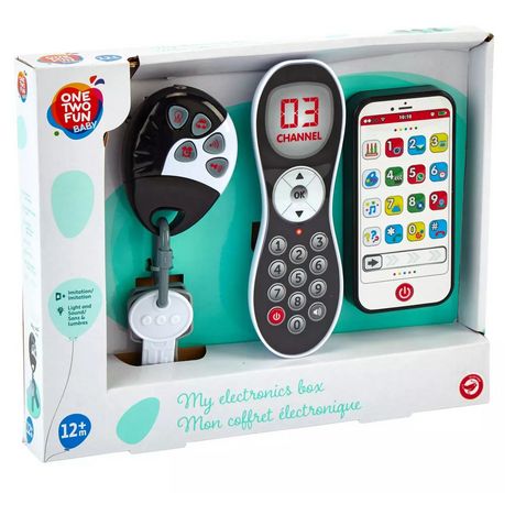 Avec son coffret électronque, bébé aura l'aire d'un vrai baby boss ! Le Smartphone pour toujours être en contact avec ses amis, la télécommande pour pouvoir toujours avoir le choix de son programme préféré et les clefs de voiture high Tech qui lui feront entendre le bruit du klaxon, qui émettent de la lumière et qui ont une fonction réveil ! Il sera bien équipé en nouvelle technologie !
