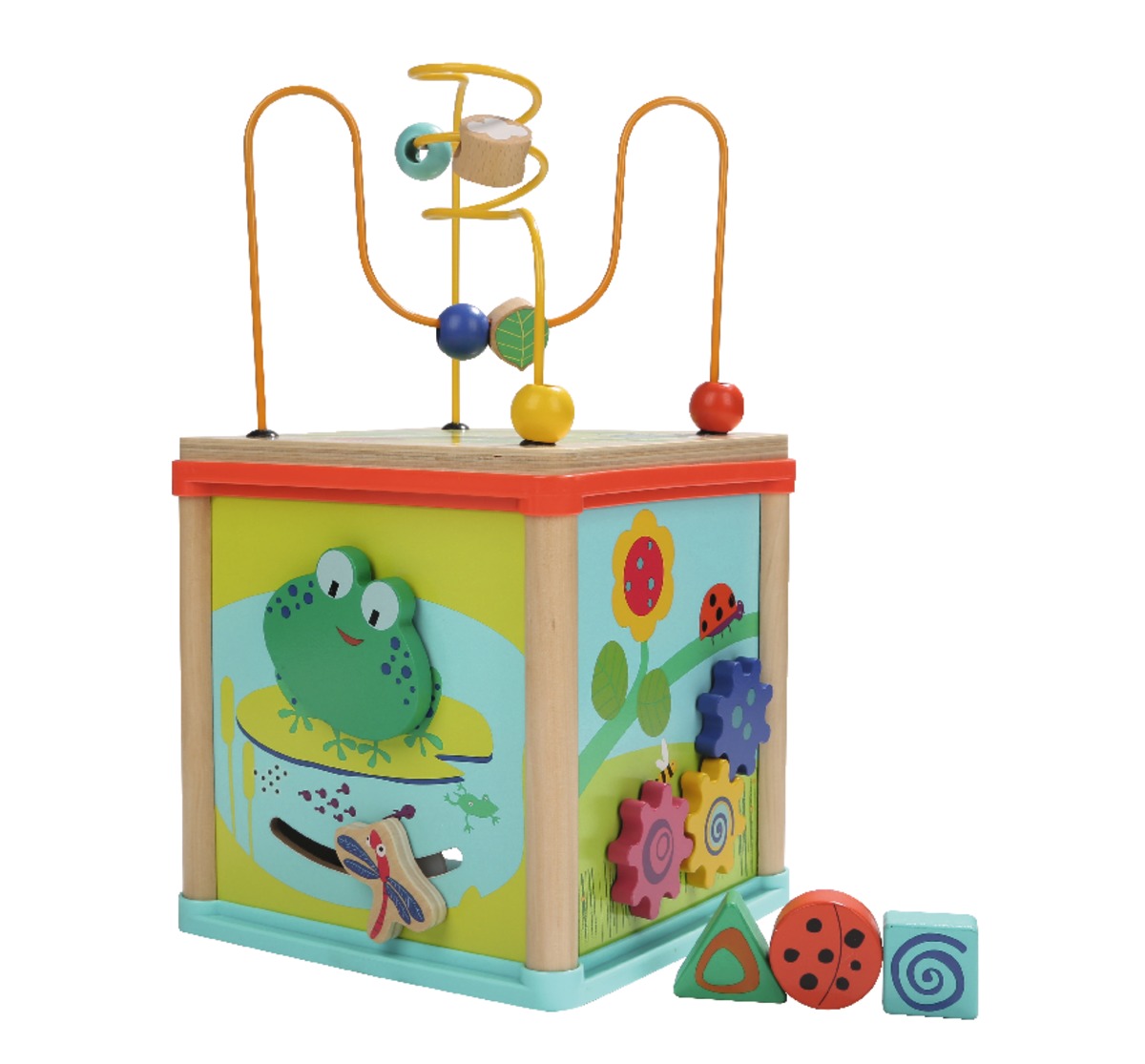 Le cube d'activités en bois 2 en 1 permettra à votre enfant d'apprendre tout en s'amusant ! Il va développer sa motricité fine grâce au système d'engrenage à enclencher. Il pourras retrouver et associer les formes. Avec la montagne russe, il lui faudra rester bien concentré afin de parvenir au bout du chemin ! Et enfin, il découvrira l'heure.