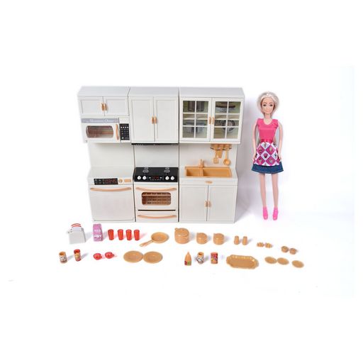 La cuisine super-équipée de ta poupée est pleine d'accessoires pour cuisiner des plats savoureux et les servir à ses amis, de quoi s'amuser pendant des heures dans la cuisine comme un chef !