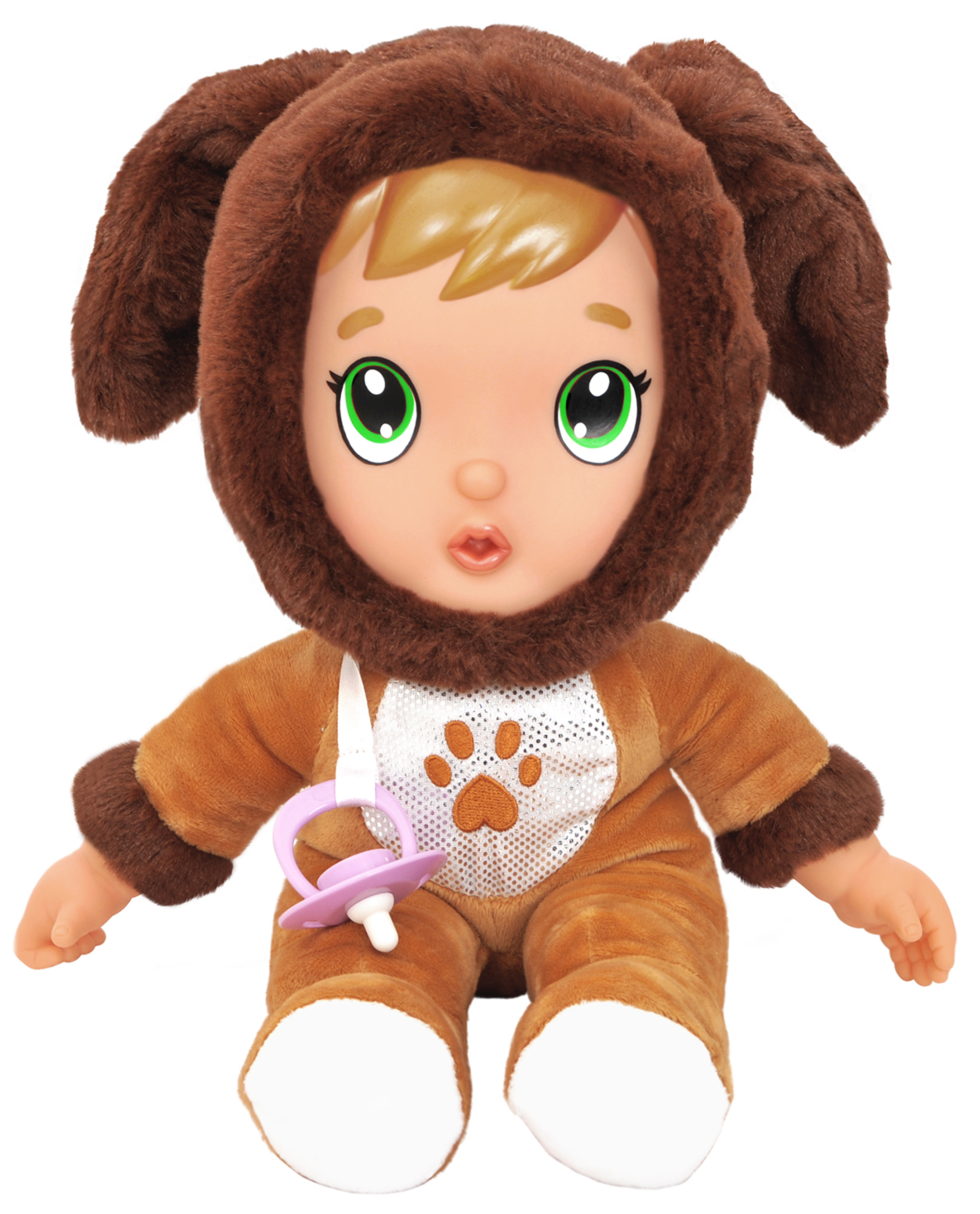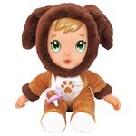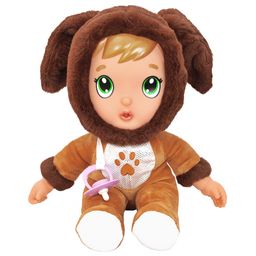 Prends soin de ce petit poupon au pyjama chien en peluche toute douce vraiment trop adorable. Comme avec un vrai bébé, tu peux lui faire plein de bisous et de câlins !