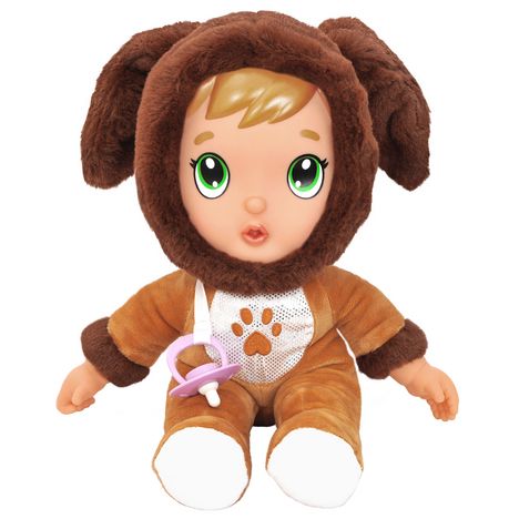 En savoir +Prends soin de ce petit poupon au pyjama chien en peluche toute douce vraiment trop adorable. Comme avec un vrai bébé, tu peux lui faire plein de bisous et de câlins !