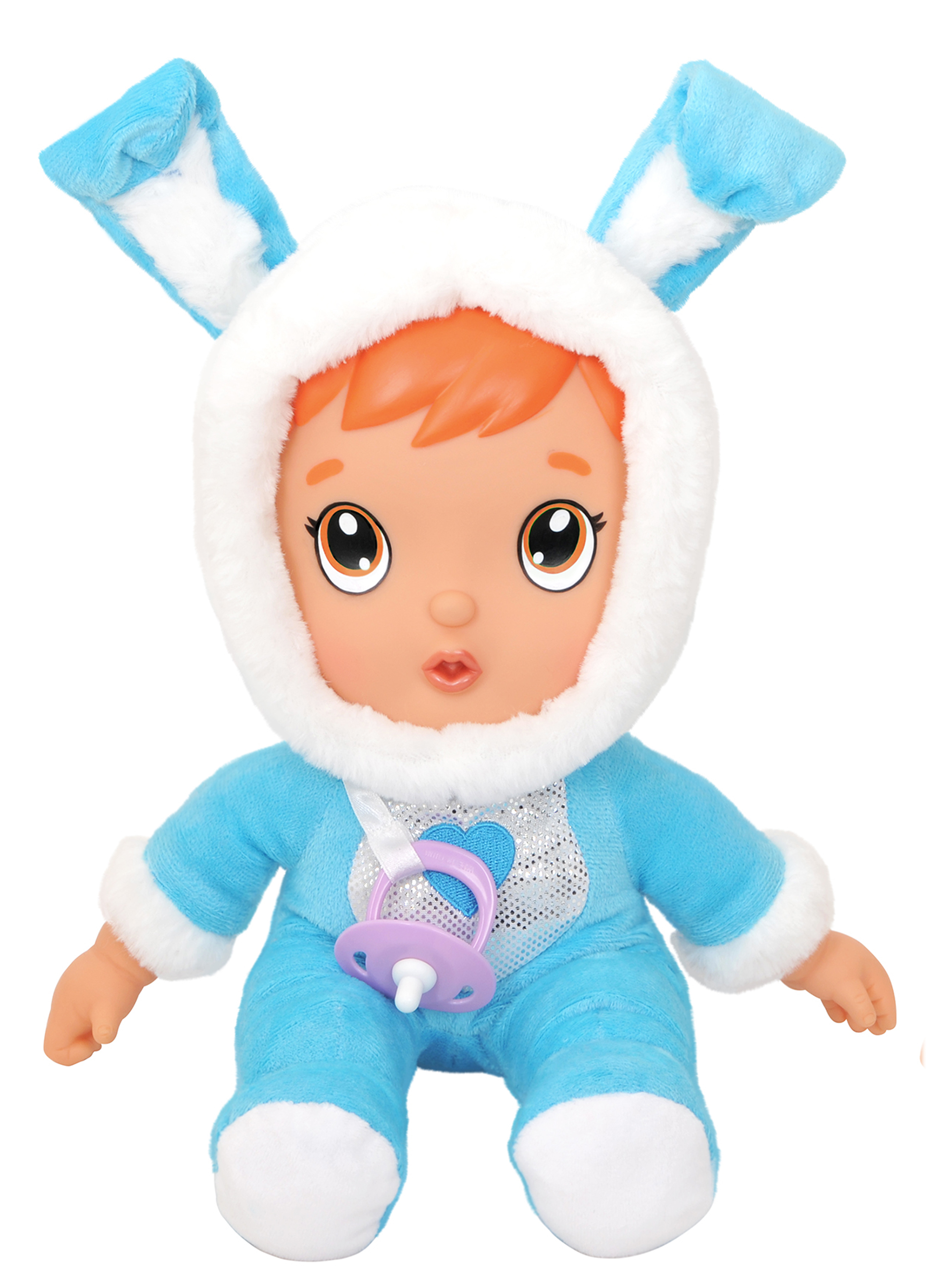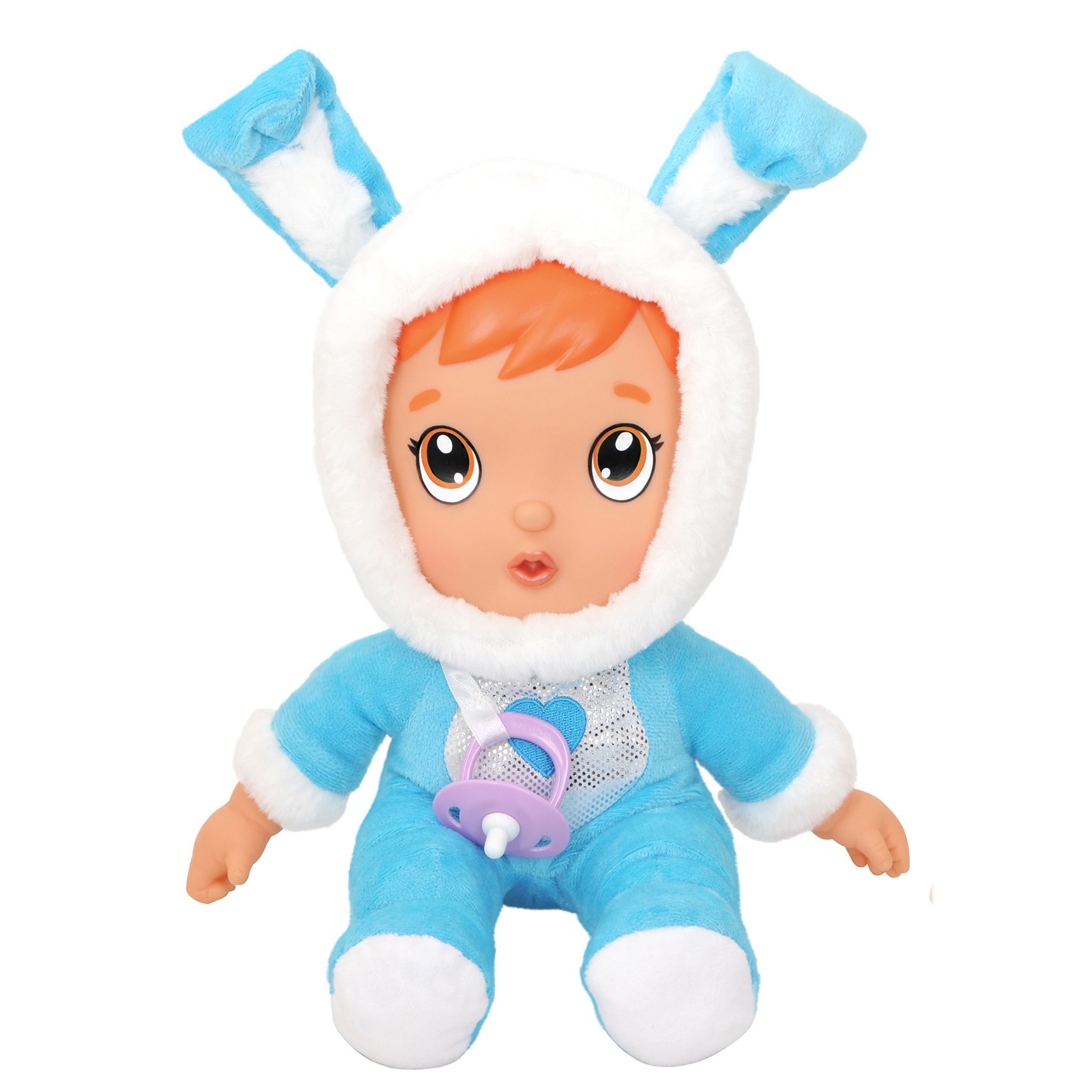 En savoir +Prends soin de ce petit poupon au pyjama lapin en peluche toute douce vraiment trop adorable. Comme avec un vrai bébé, tu peux lui faire plein de bisous et de câlins !