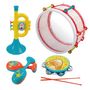 Le petit orchestre de Baby est composé d'instruments de musique : Tambour, trompette, maracas et tambourin. Parfait pour développer la coordination et le système sensoriel de votre enfant !